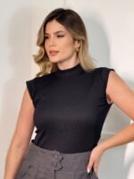 Blusa Feminina Básica em Ribana sem Manga  - Preto